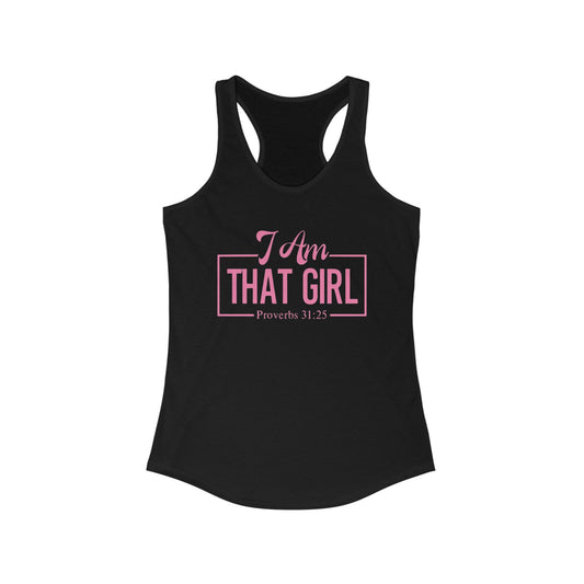 Inspirational Women's Racerback Tank - "I Am THAT GIRL" Proverbs 31:25, Motivational Top, Perfect for Fitness, Casual Wear, Gifts