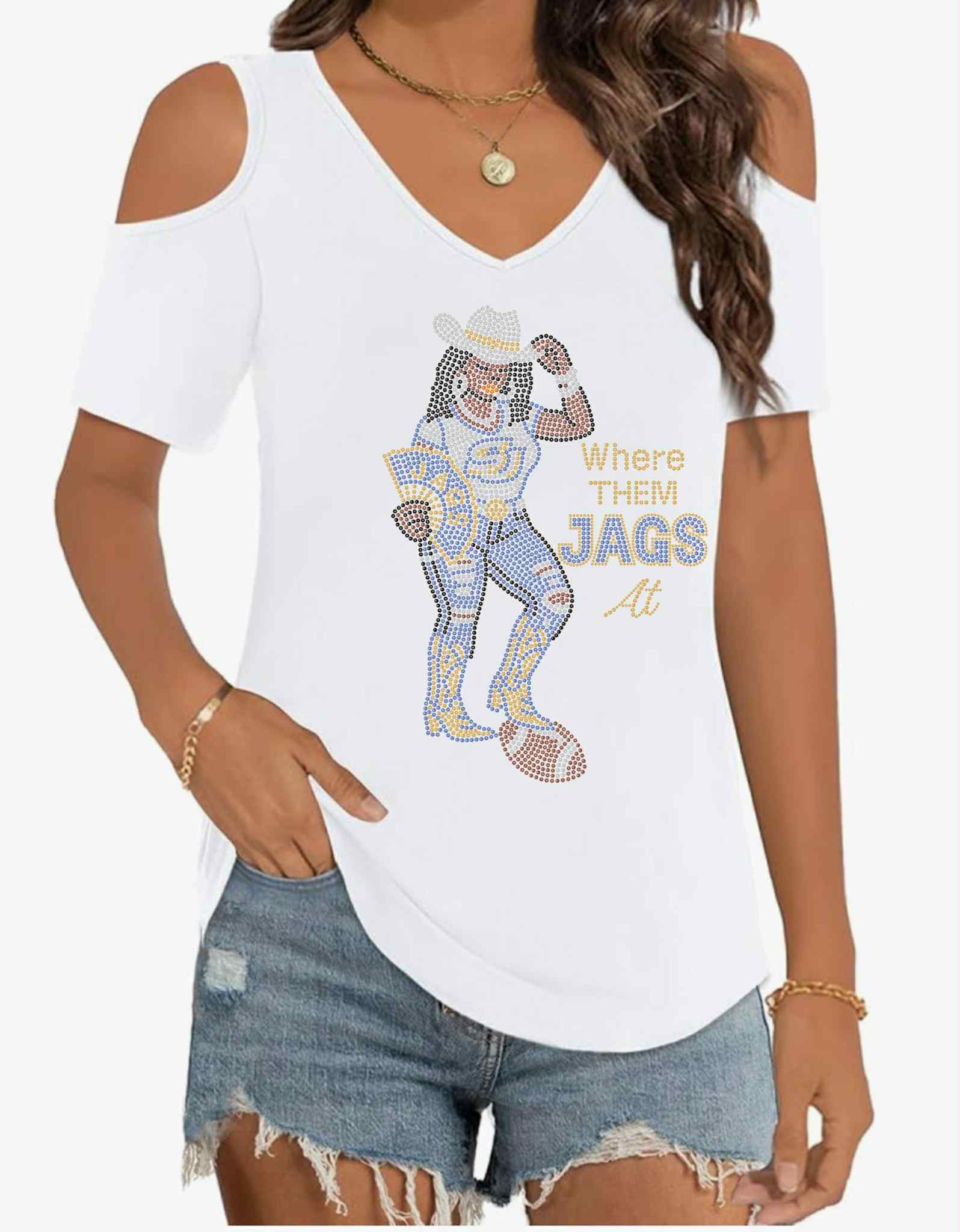 Our beautifully rhinestone embellished t-shirt is made to order and handcrafted to perfection with the highest quality crystal.